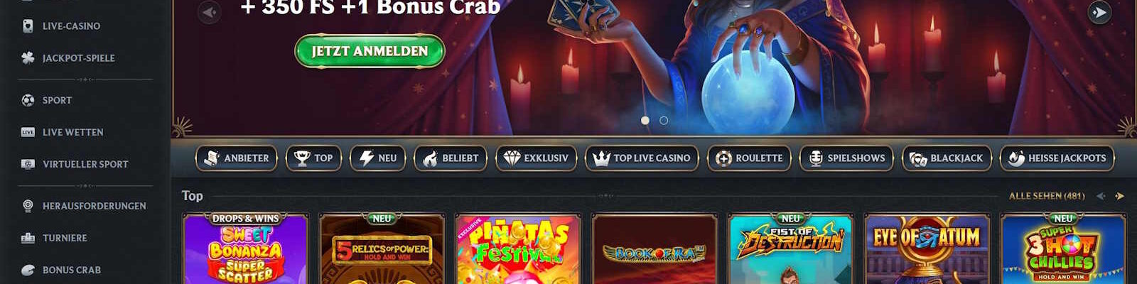 250% bis 3000 โฌ + 350 FS + 1 Bonus Crab