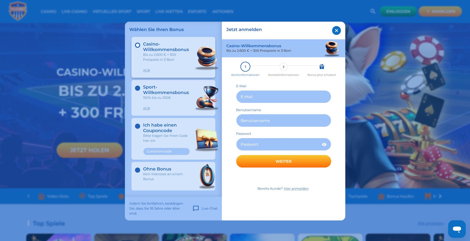 Bis zu 2.600 โ‚ฌ & 300 Freispiele