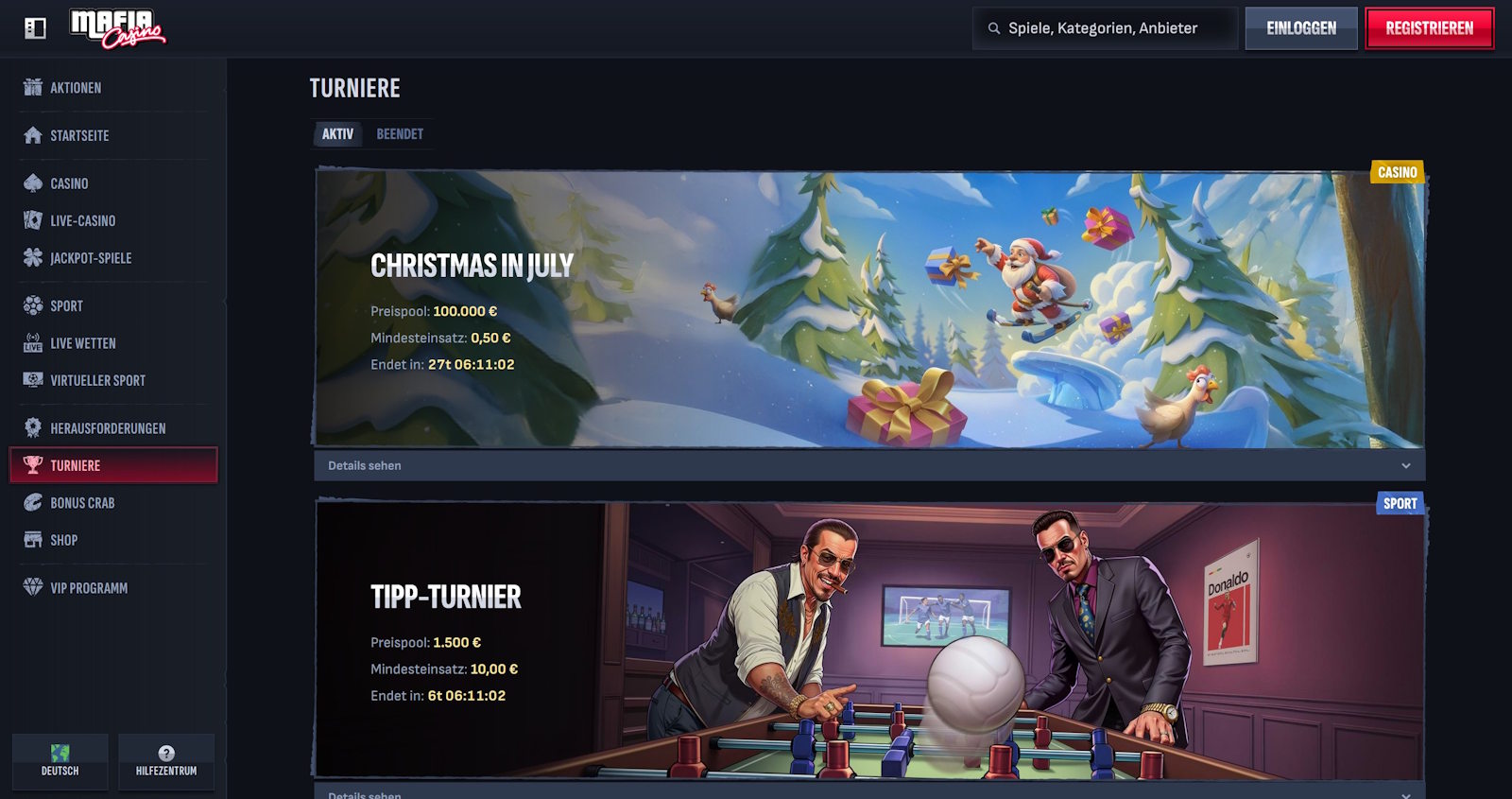 Erfahren Sie im Beitrag viele interessante Details zum Mafia Casino: Spielauswahl, Bonusangebote, Support, Sicherheit, Turniere und mehr.
