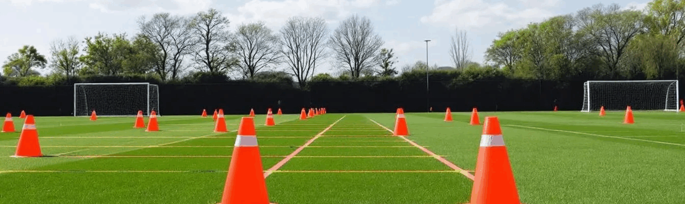 Einsatz von Hütchen, Koordinationsleitern und anderen Hilfsmitteln ermöglicht variables und effektives Training. Standardhilfsmittel wie Hütchen, Markierungsteller, Koordinationsleitern oder Mini- und Großtore sind für moderne Übungen unerlässlich und erlauben ein variables, schnelles Aufbauen und Verändern der Trainingslandschaft.