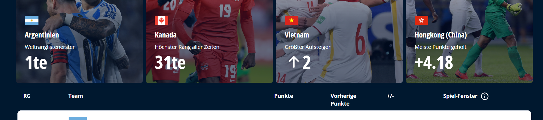 Für die vollständige Liste und weitere Details, wie den genauen Punktestand der anderen Mannschaften und die neuesten Änderungen, kannst du die offizielle FIFA-Website besuchen.
